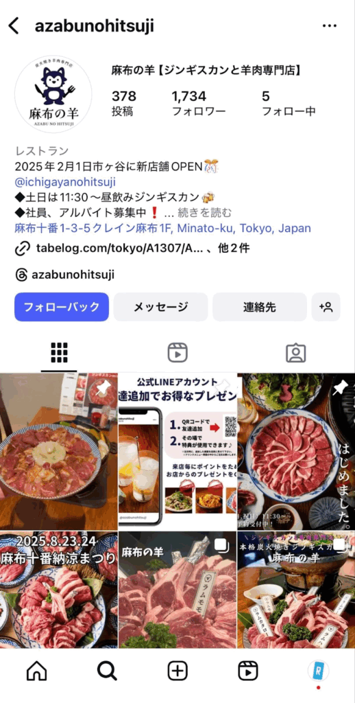 店名変更により”麻布×羊料理”という認知が広がり、検索流入が増加。また、Instagram投稿や口コミにより新規顧客が増え、「コスパよく羊肉を楽しめる店」として麻布十番エリアに定着。