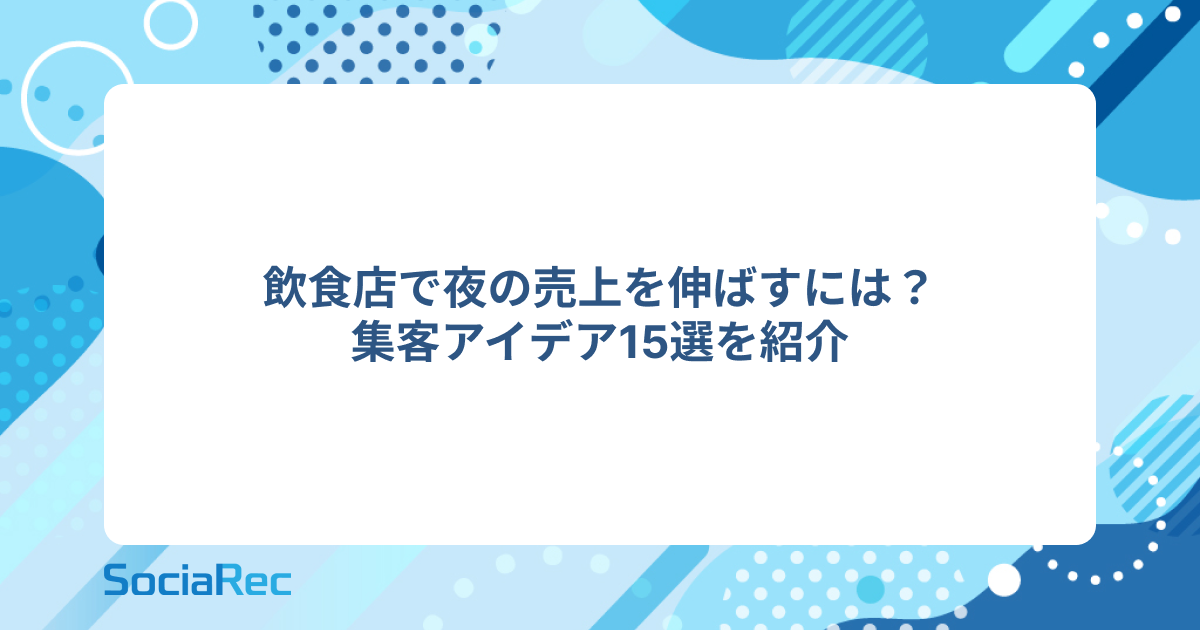 飲食店で売上をあげていくためには夜の売上は大事。夜の集客方法についてより詳しく知りたい人は、以下の記事を参考にしてみてください。