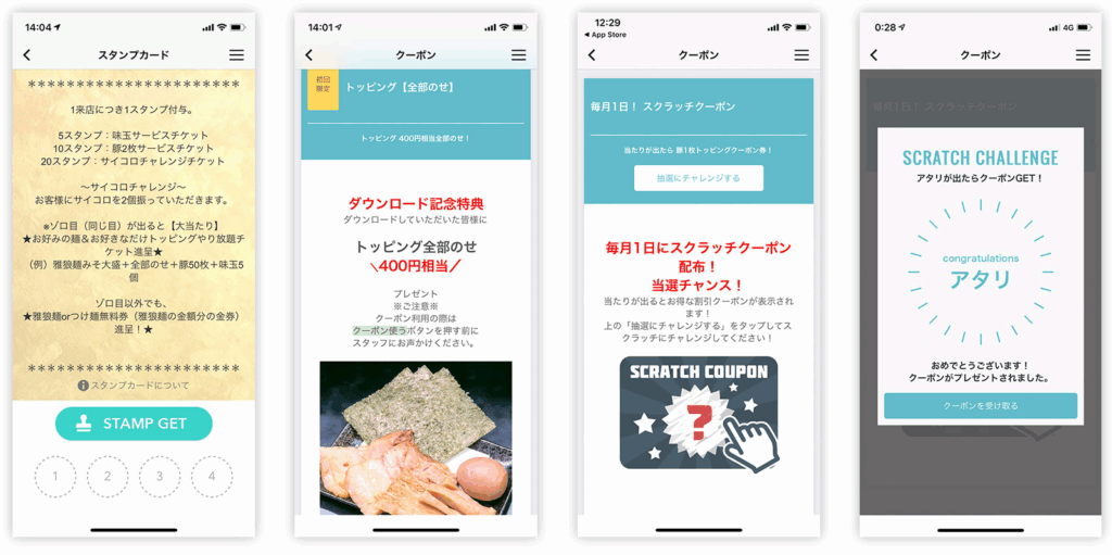上記の発見をきっかけにデジタルスタンプカードを導入し、一定回数来店した顧客に特典を付与する施策を実施しました。