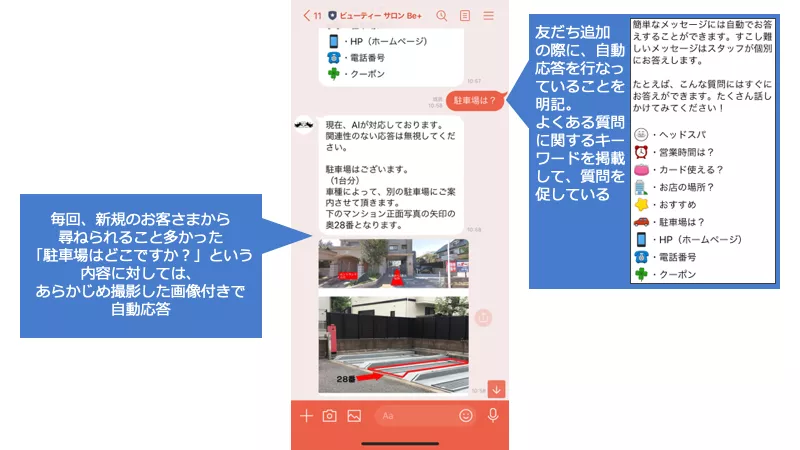 実際にLINE公式アカウントを導入した『ビューティー サロン Be+』では、LINE公式アカウントの応答メッセージを活用し、スタッフ1名で250名を超えるリピーターの獲得に成功しています。
