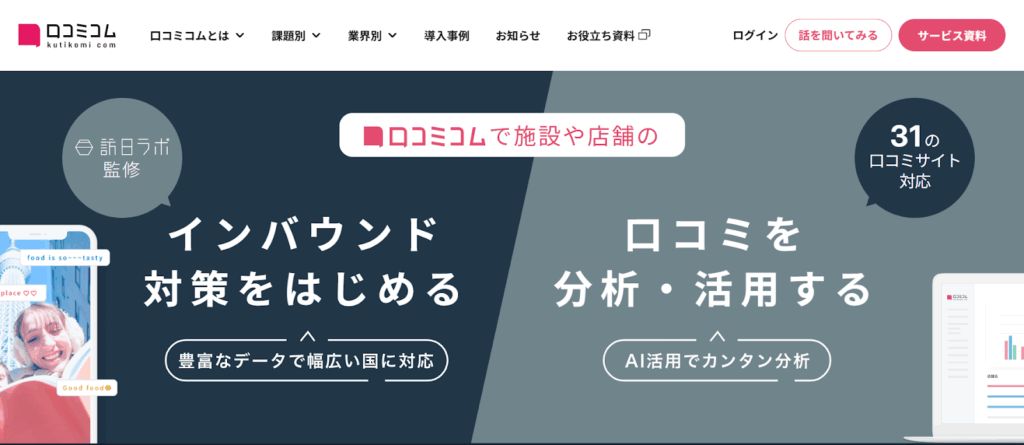 口コミコムは、GoogleMapをはじめとする複数の口コミサイトの評価を、ひとつの画面で確認・管理できるアプリです。