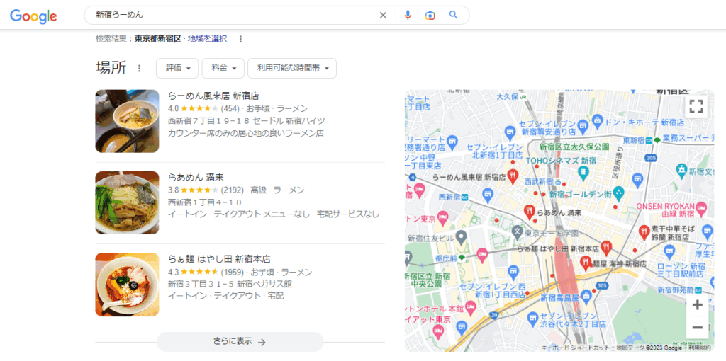 - 「〇〇(地域名) ラーメン 2階」といった具体的な検索キーワードで上位表示を狙うMEO対策