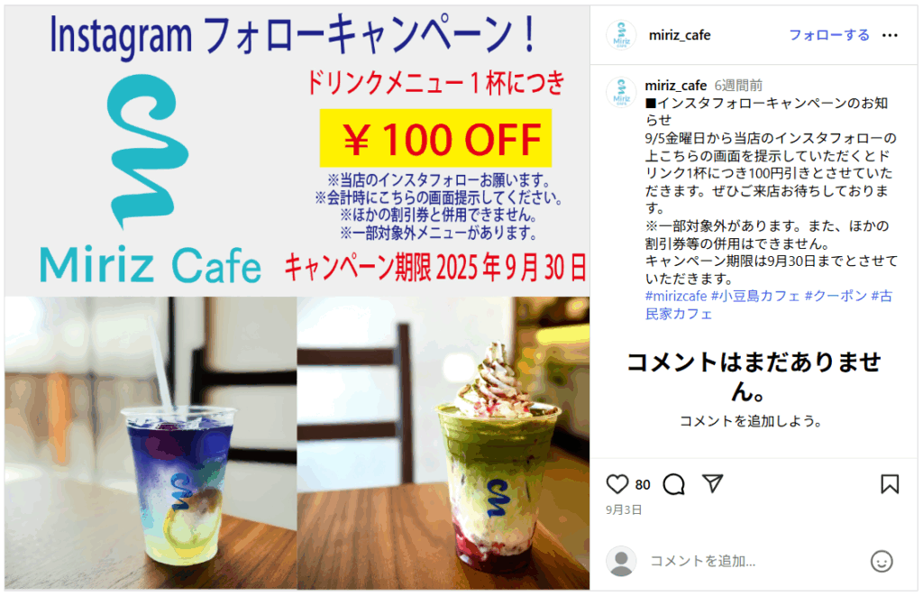 - 「インスタグラムをフォローしてくれたらドリンク1杯無料」などフォロワー限定特典を用意し、フォロワーを増やす