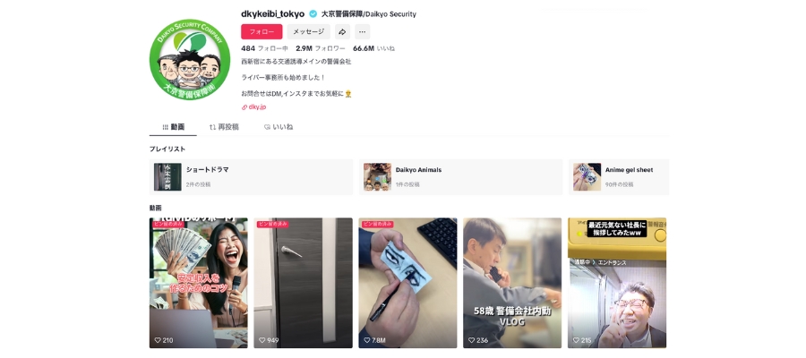 警備員の日常や業務内容をユーモアを交えた動画で紹介。職場の親しみやすさをアピールし、若い世代の興味を引きつけています。