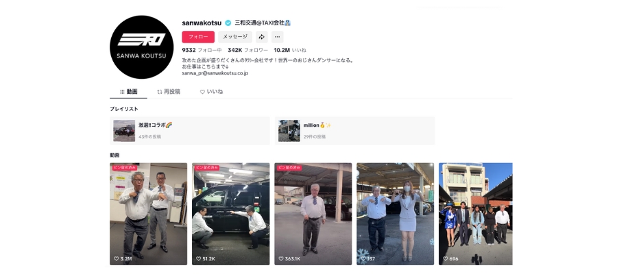 タクシー業界の魅力を楽しく発信。運転手のエピソードやユニークなサービス紹介動画を投稿し、若年層のタクシー業界への理解を深めています。