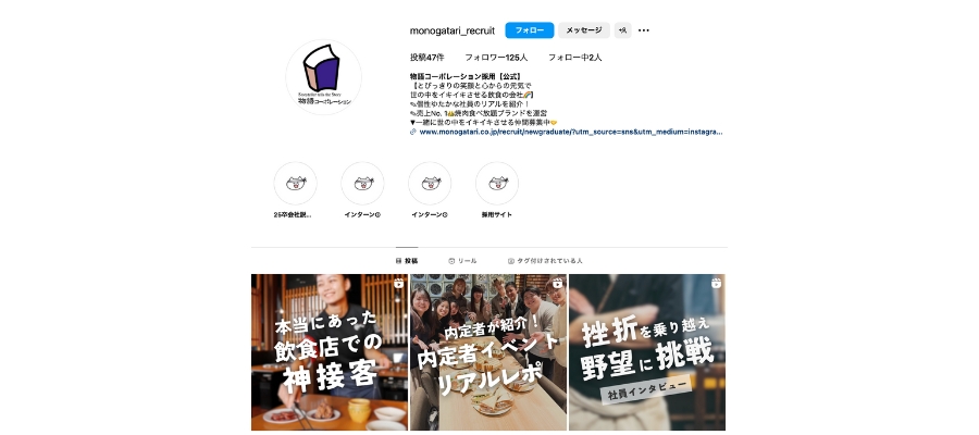 また、ストーリーズやリールを活用すれば、カジュアルで親しみやすい情報を発信でき、求職者との距離を縮めることができます。