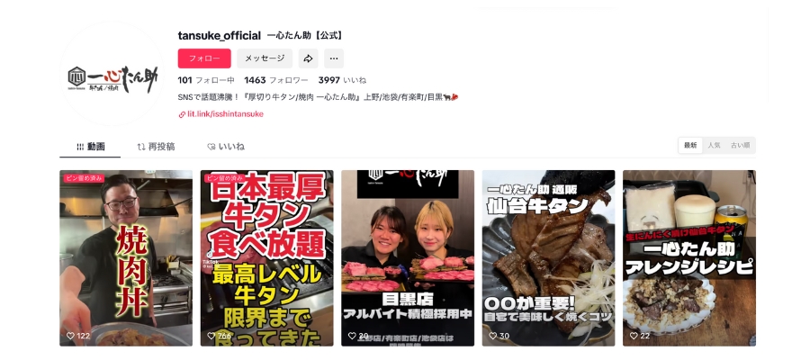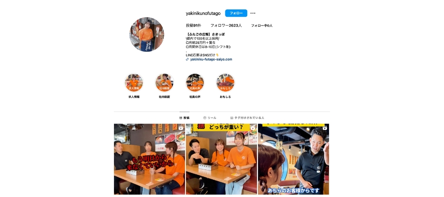 焼肉業界ならではのエピソードや社員のインタビュー動画を投稿することで、共感や関心を集めています。また、インフルエンサーとのタイアップも積極的に行い、店舗の魅力を広く伝えています。