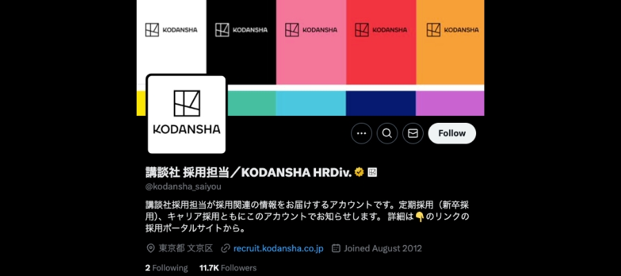 編集者やライターの仕事内容を中心に、社員の声や出版業界の魅力を投稿。リアルな仕事の様子を伝えることで、求職者の興味を引きつけています。